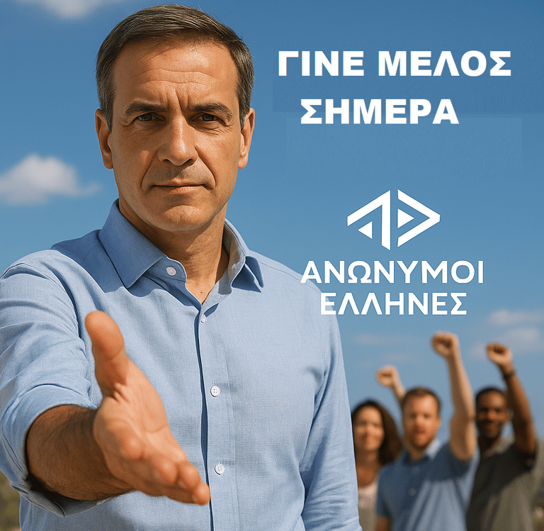 Εμείς, οι Ανώνυμοι Έλληνες, αναλαμβάνουμε την πρωτοβουλία για τη δημιουργία μιας νέας πραγματικότητας στην Ελλάδα. Με εμπιστοσύνη, αφοσίωση και ανεξάντλητη ενέργεια, θα εργαστούμε για να οδηγήσουμε τη χώρα μας σε μια εποχή ευημερίας, ανάπτυξης και ευδαιμονίας.